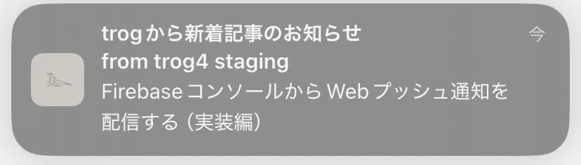 通知を許可後、お使いの端末に「trogからのお知らせ」がプッシュ通知形式で届くようになります。